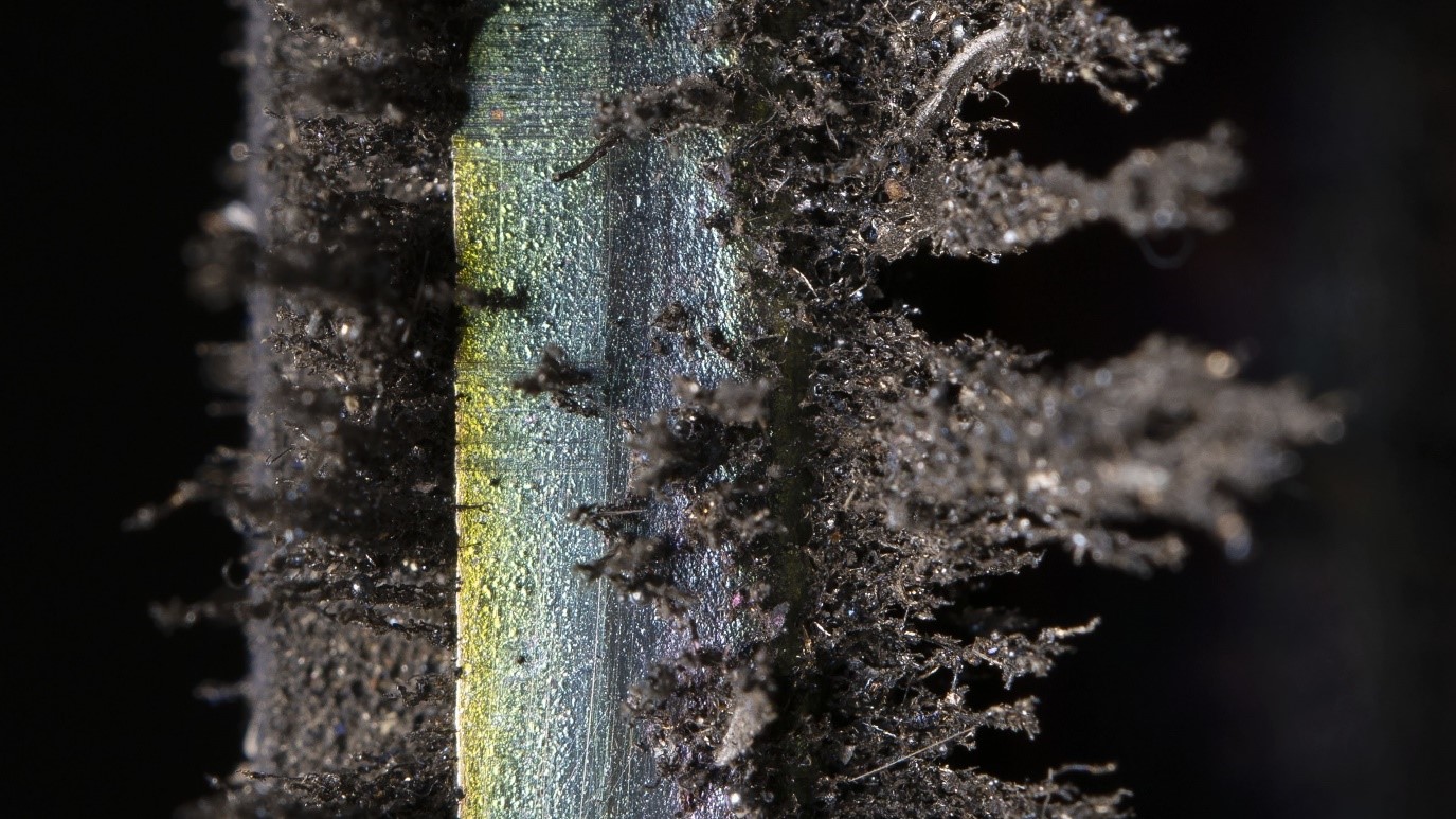 Perpetual Motion is staged as a split screen installation, with a six-metre-high vertical screen, connected to a large-scale floor projection, that occupies most of the exhibition space. The screens depict the constant drift of metal dust, amplified and magnified through the artist’s camera lens. Visitors can immerse themselves in the movement of the abstract material, as it warps and distorts, suggesting new shapes and imagery, such as the surface of an outermost planet.